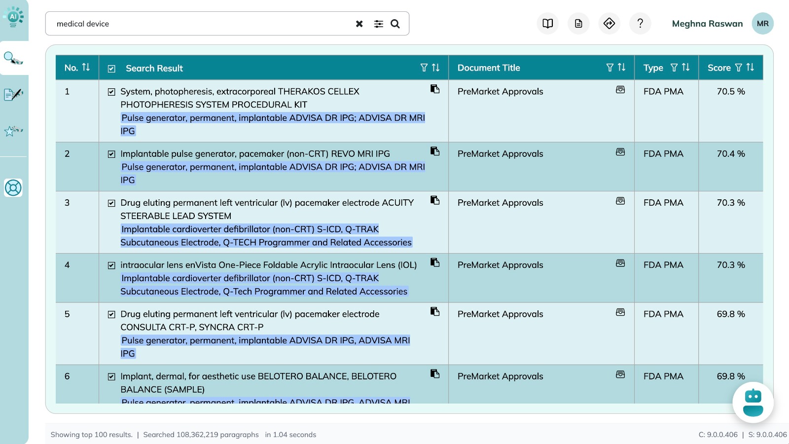 - Score: This displays how closely the search results match your query. This is represented by a relevance/confidence score for each result, helping you prioritize relevant results.